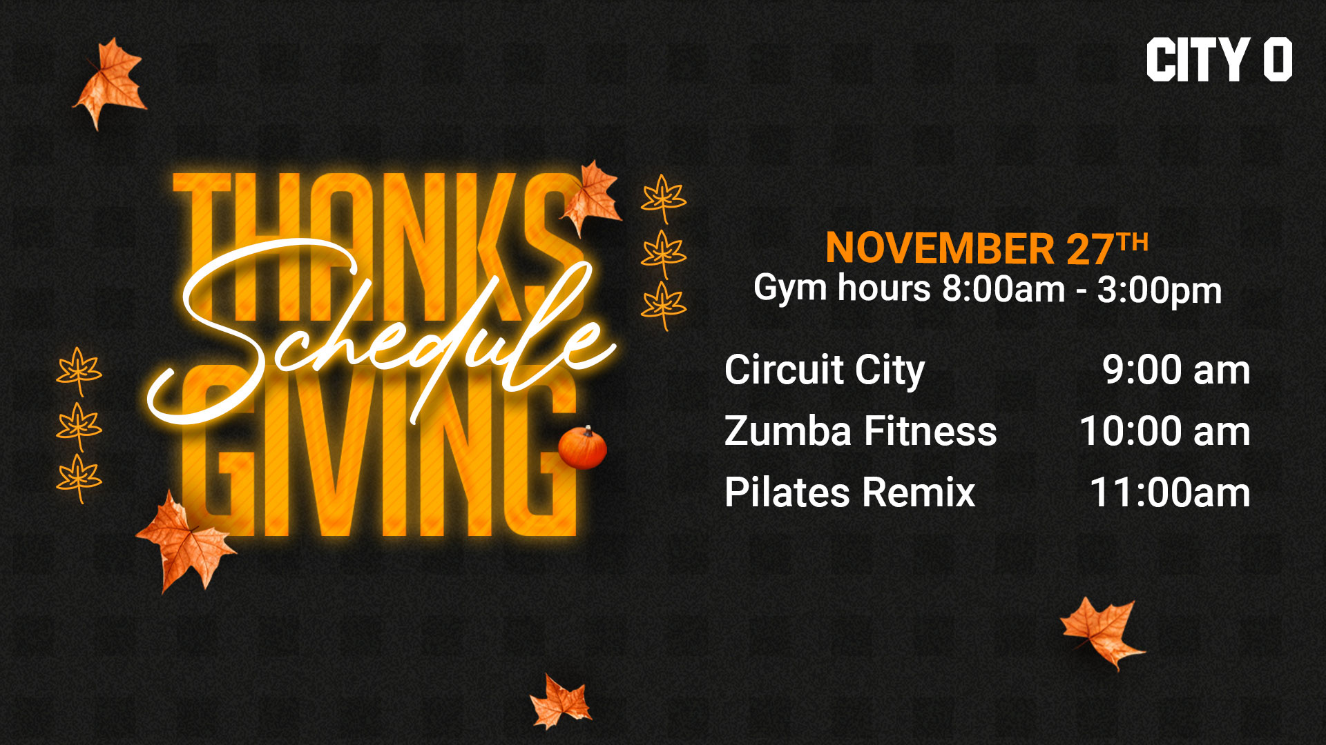Check Out our Schedule for Thanksgiving Day this year!  Book your class now!